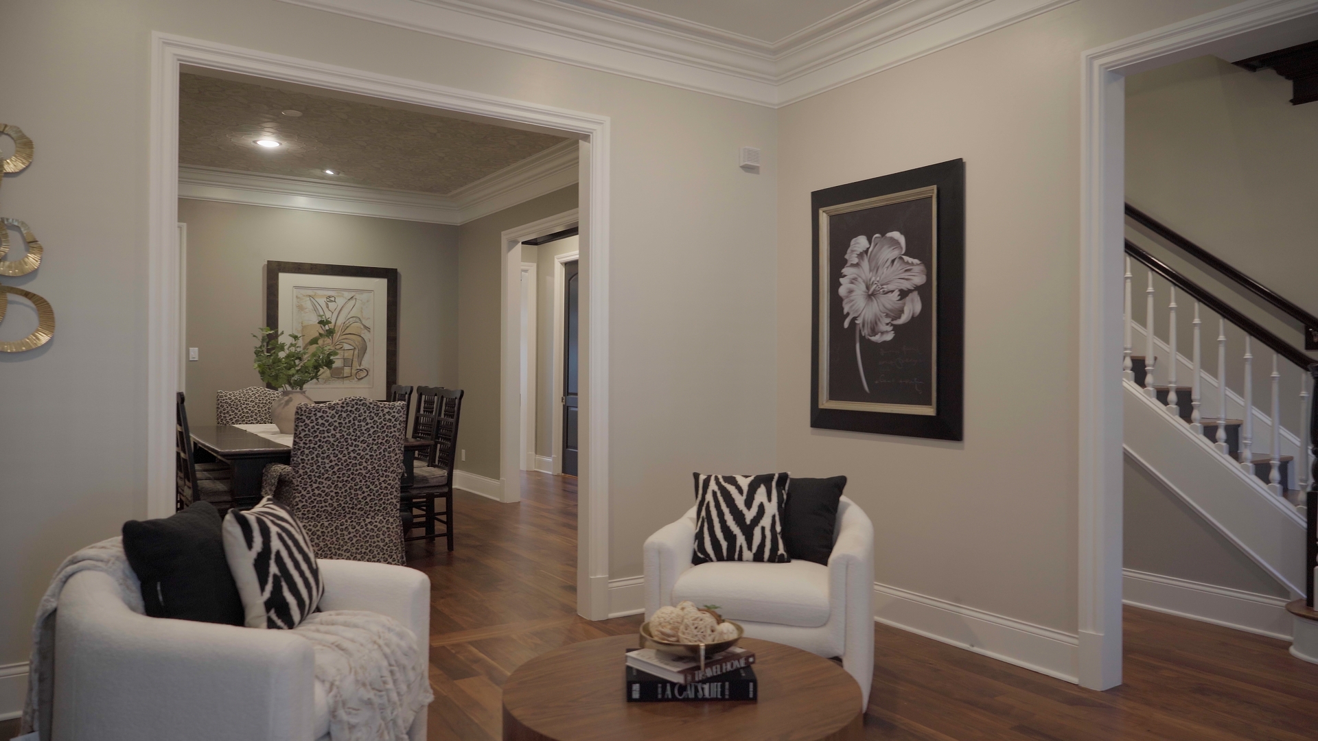 What’s not to love about Clayton? Family friendly, walkable neighborhoods in close proximity to parks and restaurants. When properties like this one go on the market, and they have been staged to perfection, they never last long – sometimes selling in the same weekend the listing goes live! Our favorite selection for this project were the white leopard print chairs that just work amazingly for the dining room area.