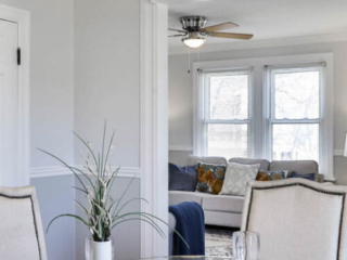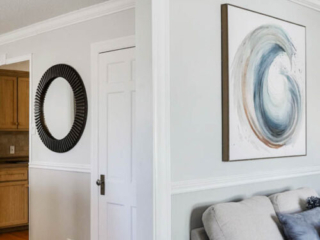 Between the cabinetry, the hardwood floor, and the cathedral ceilings, potential buyers were seeing a whole lot of brown while touring this property. We set out to balance this by incorporating elegant neutral colors – white, beige, blue, and gray. The finished result offers a brightness and feeling of “fresh” that help make every room feel as comfortable as can be!